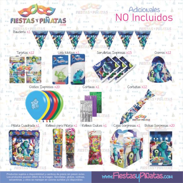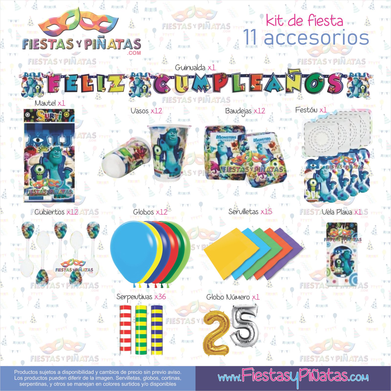 KIT TEMÁTICO CUMPLEAÑOS MONSTER INC – DECORACIÓN FIESTAS Y PIÑATAS – 11 ACCESORIOS
