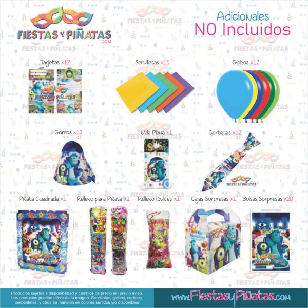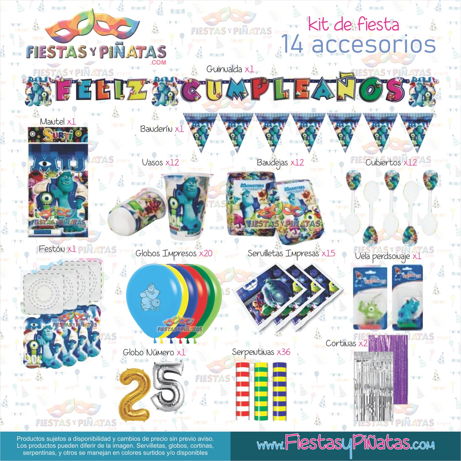 KIT TEMÁTICO CUMPLEAÑOS MONSTER INC – DECORACIÓN FIESTAS Y PIÑATAS – 14 ACCESORIOS