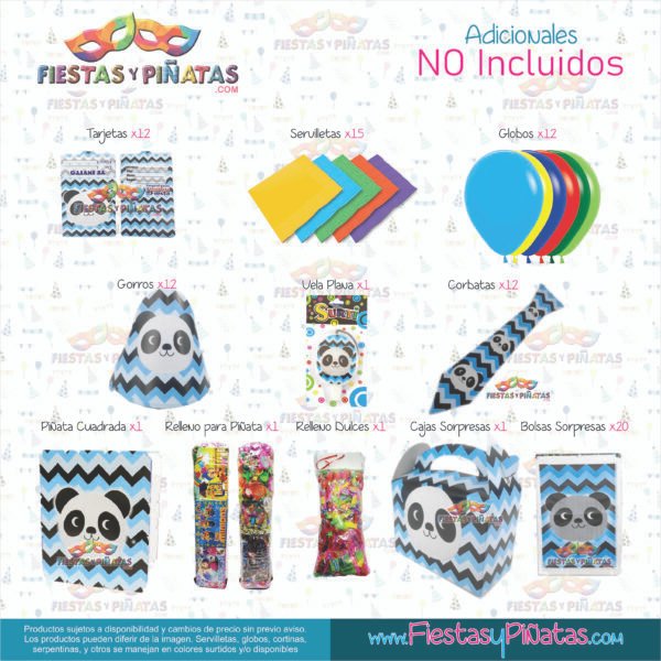 KIT CUMPLEAÑOS OSO PANDA AZUL – DECORACIÓN FIESTAS Y PIÑATAS 14 ACCESORIOS