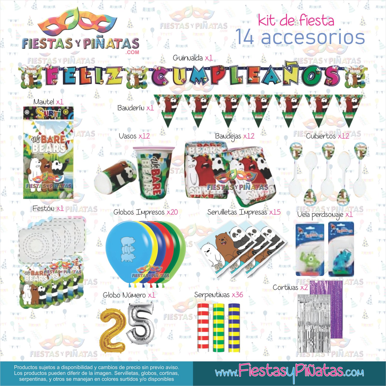 KIT CUMPLEAÑOS OSOS ESCANDALOSOS – DECORACIÓN FIESTAS Y PIÑATAS – 14 ACCESORIOS