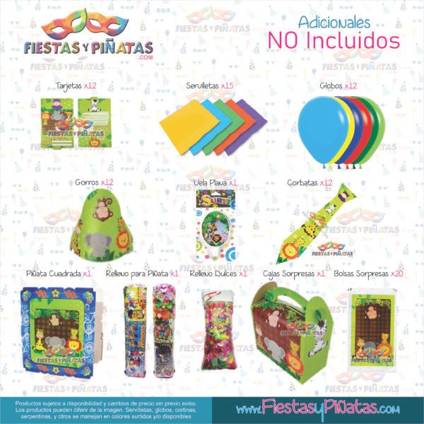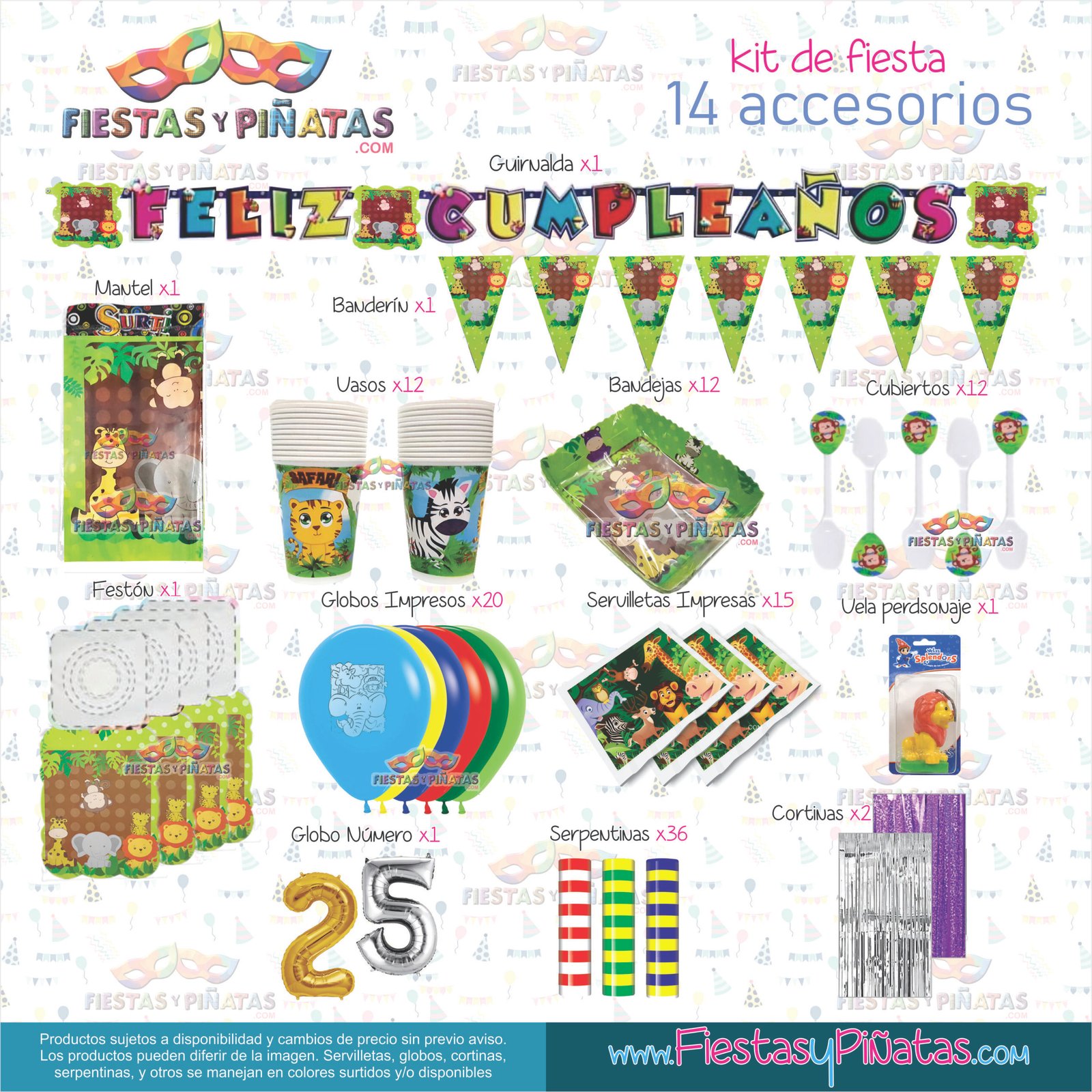 KIT CUMPLEAÑOS SELVA – SAFARI DECORACIÓN FIESTAS Y PIÑATAS – 14 ACCESORIOS