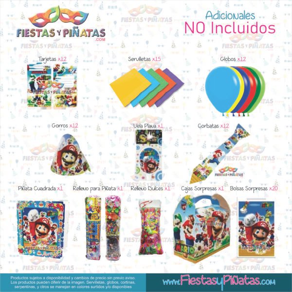 KIT CUMPLEAÑOS SUPER MARIO BROSS – DECORACIÓN FIESTAS Y PIÑATAS – 14 ACCESORIOS