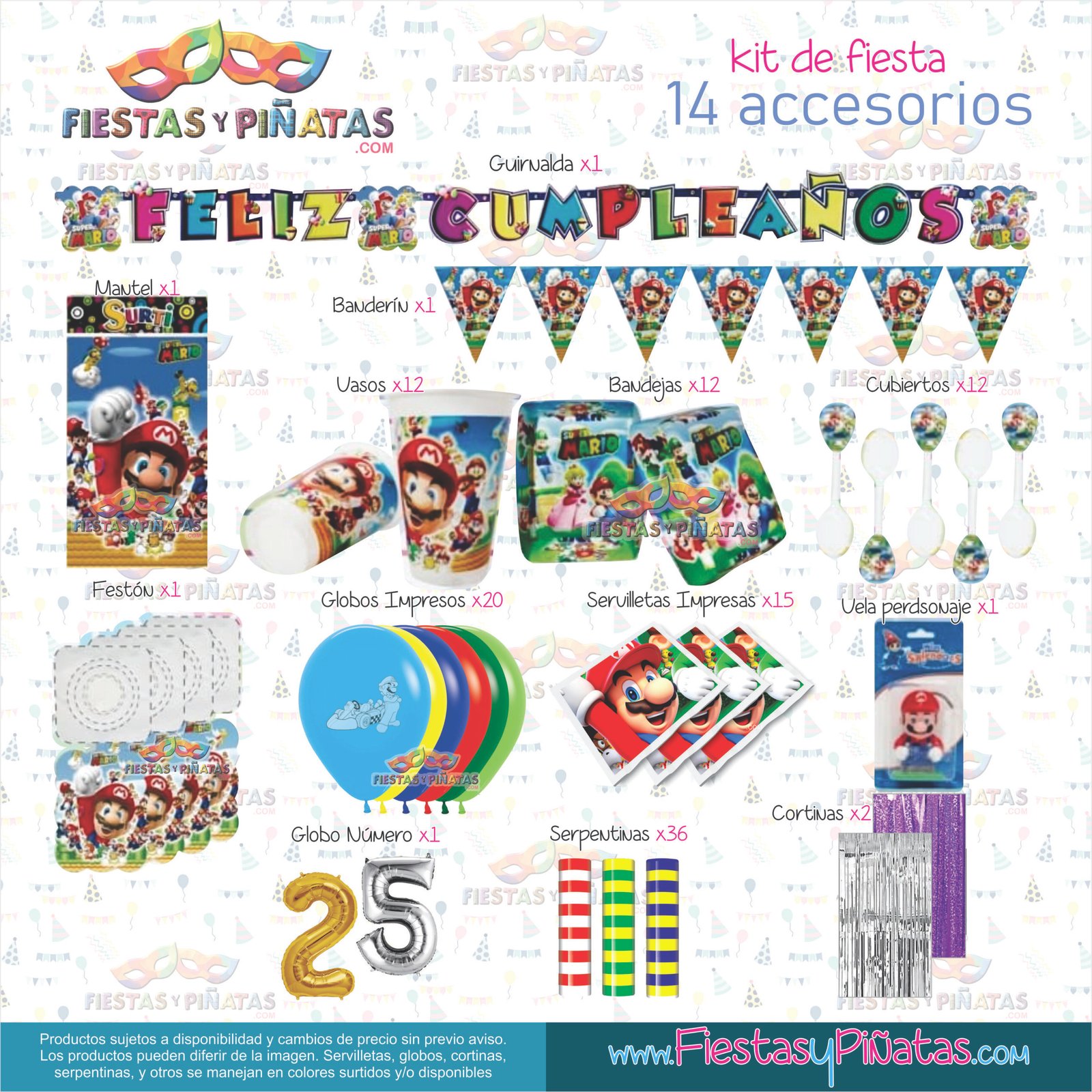 14 accesorios de Super Mario Bross para fiesta de cumpleaños – kit infantil