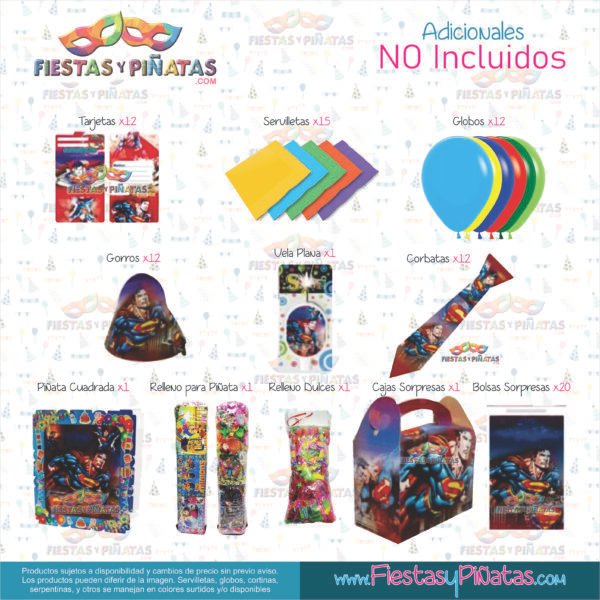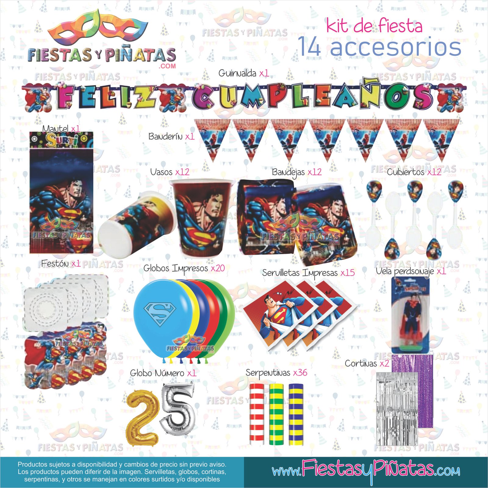 KIT CUMPLEAÑOS SUPERMAN – DECORACIÓN FIESTAS Y PIÑATAS – 14 ACCESORIOS