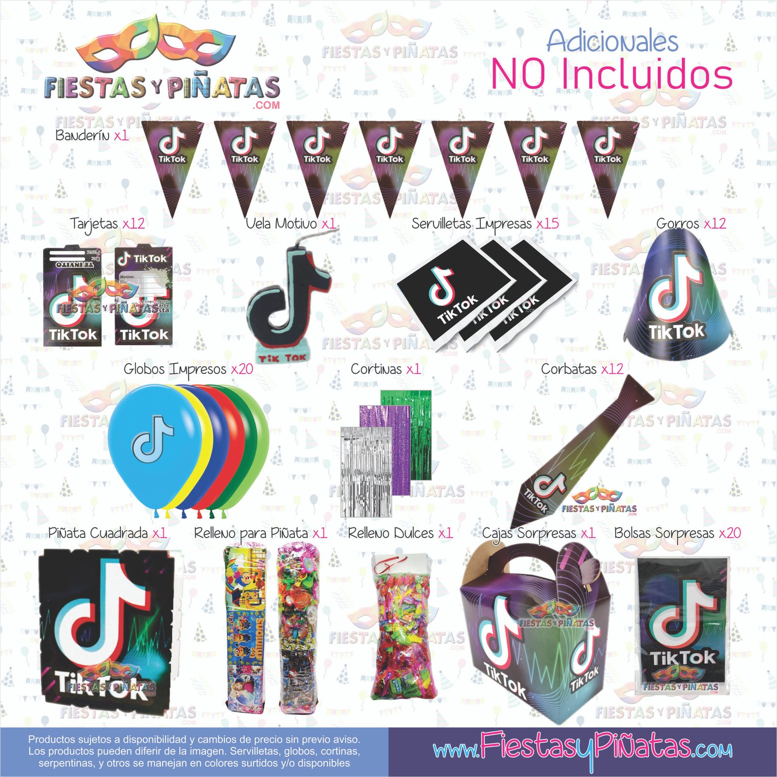 KIT TEMÁTICO CUMPLEAÑOS TIK TOK – DECORACIÓN FIESTAS Y PIÑATAS 11 ACCESORIOS