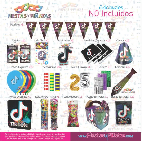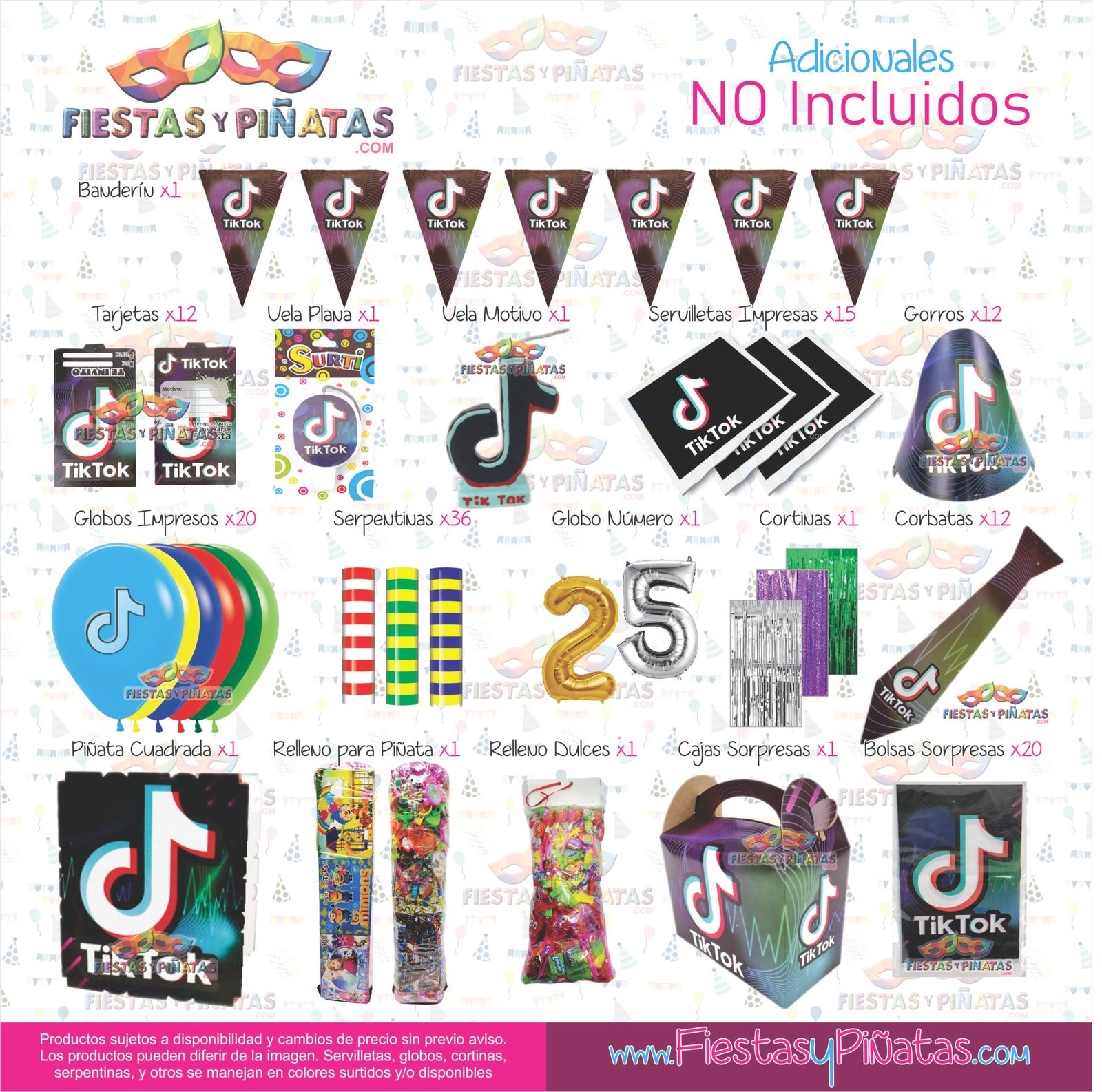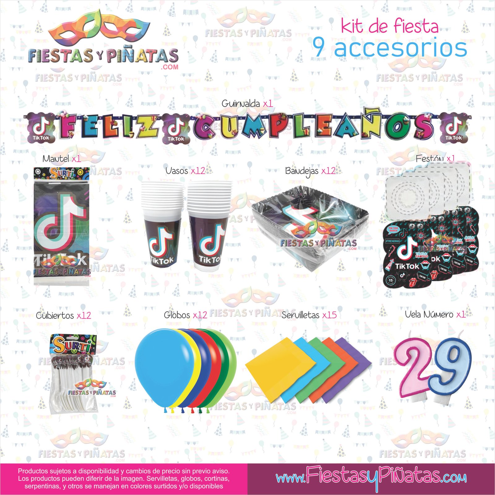 KIT TEMÁTICO CUMPLEAÑOS TIK TOK – DECORACIÓN FIESTAS Y PIÑATAS 9 ACCESORIOS