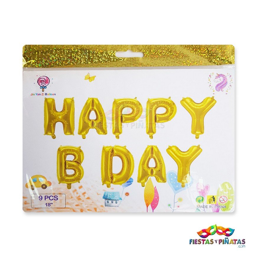 Avisos globos metalizados happy birthday letreros DORADO
