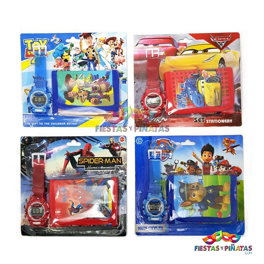 Relojes con billetera niños Sorpresas para niños o niñas, colores y personajes surtidos.